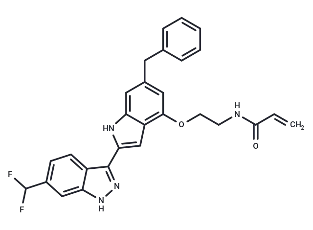 – O(CCNC(C=C)=O)C1=C2C=C(NC2=CC(CC3=CC=CC=C3)=C1)C=4C=5C(NN4)=CC(C(F)F)=CC5