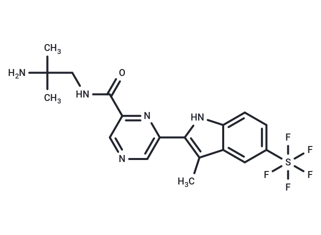 – O=C(NCC(N)(C)C)C1=NC(=CN=C1)C=2NC3=CC=C(C=C3C2C)S(F)(F)(F)(F)F
