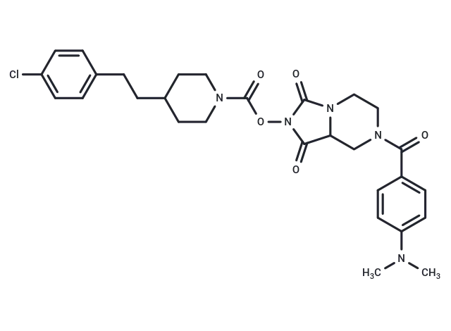 – O=C1C2N(C(=O)N1OC(=O)N3CCC(CCC4=CC=C(Cl)C=C4)CC3)CCN(C(=O)C5=CC=C(N(C)C)C=C5)C2