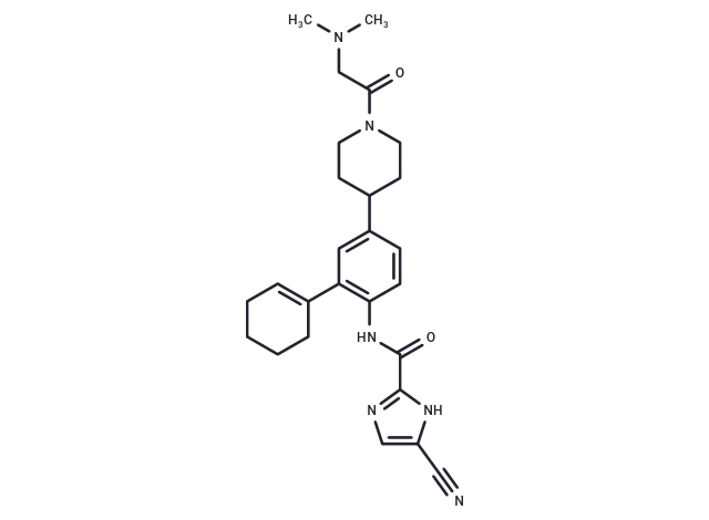 – N(C(=O)C=1NC(C#N)=CN1)C2=C(C=C(C=C2)C3CCN(C(CN(C)C)=O)CC3)C=4CCCCC4