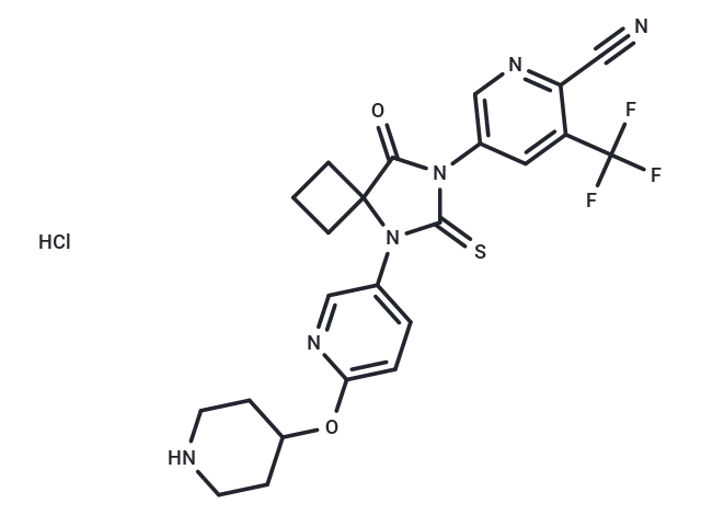 – Cl.FC(F)(F)c1cc(cnc1C#N)N1C(=S)N(c2ccc(OC3CCNCC3)nc2)C2(CCC2)C1=O