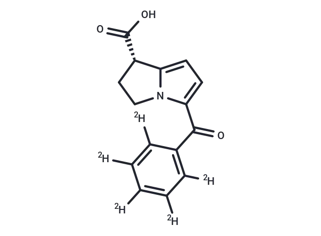 – Ketorolac-d5-P1 is a deuterated compound of Ketorolac. Ketorolac has a CAS number of 74103-06-3. Ketorolac is a non-steroidal anti-inflammatory drug (NSAID) in the family of heterocyclic acetic acid derivatives. It acts by inhibiting the bodily synthesis of prostaglandins.