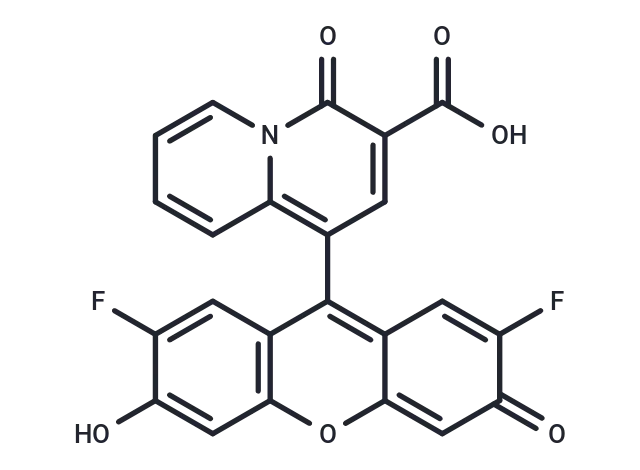 – O=C(O)C1=CC(=C2C=CC=CN2C1=O)C3=C4C=C(F)C(=O)C=C4OC=5C=C(O)C(F)=CC53