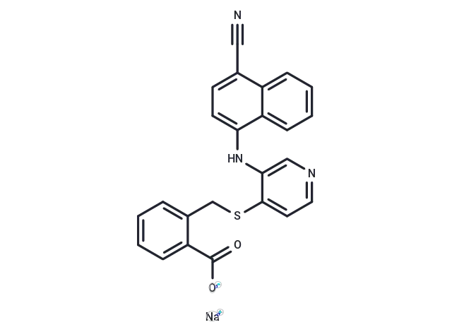– [Na+].[O-]C(=O)c1ccccc1CSc1ccncc1Nc1ccc(C#N)c2ccccc12