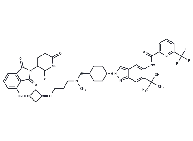 – CN(CCCO[C@H]1C[C@@H](C1)Nc1cccc2C(=O)N(C3CCC(=O)NC3=O)C(=O)c12)C[C@H]1CC[C@@H](CC1)n1cc2cc(NC(=O)c3cccc(n3)C(F)(F)F)c(cc2n1)C(C)(C)O