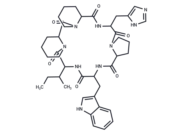– C(C=1C=2C(NC1)=CC=CC2)C3NC(=O)C4N(C(=O)C(CC5=CN=CN5)NC(=O)C6N(C(=O)C7N(C(=O)C(C(CC)C)NC3=O)CCCC7)CCCC6)CCC4