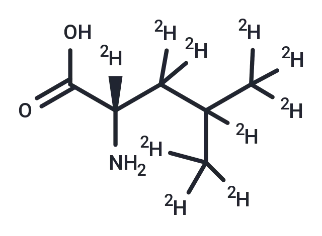 – L-Leucine-d10 is a deuterated compound of L-Leucine. L-Leucine has a CAS number of 61-90-5. Leucine is one of nine essential amino acids in humans (provided by food), Leucine is important for protein synthesis and many metabolic functions. Leucine contributes to regulation of blood-sugar levels; growth and repair of muscle and bone tissue; growth hormone production; and wound healing. Leucine also prevents breakdown of muscle proteins after trauma or severe stress and may be beneficial for individuals with phenylketonuria. Leucine is available in many foods and deficiency is rare.