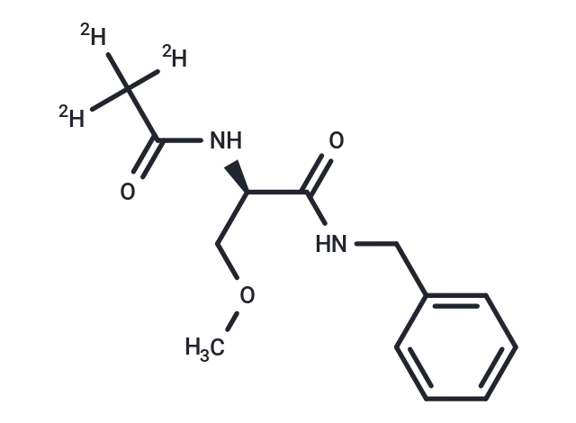 – Lacosamide-d3 (Acetyl-d3) is a deuterated compound of Lacosamide. Lacosamide has a CAS number of 175481-36-4. Lacosamide is a functionalized amino acids. Lacosamide modulates sodium channels in a novel manner: It selectively enhances sodium channel slow inactivation with no effects on fast inactivation Lacosamide has demonstrated antiepileptic effectiveness in different rodent seizure models and antinociceptive potential in experimental animal models that reflect distinct types and symptoms of neuropathic as well as chronic inflammatory pain.