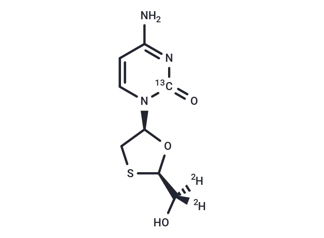 – Lamivudine-13C-d2 the 13C and deuterated compound of Lamivudine. Lamivudine has a CAS number of 134678-17-4. Lamivudine is a reverse transcriptase inhibitor and ZALCITABINE analog in which a sulfur atom replaces the 3′ carbon of the pentose ring. It is used to treat HIV disease.