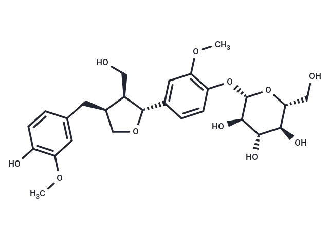 – C(O)[C@H]1[C@@H](OC[C@H]1CC2=CC(OC)=C(O)C=C2)C3=CC(OC)=C(O[C@@H]4O[C@H](CO)[C@@H](O)[C@H](O)[C@H]4O)C=C3