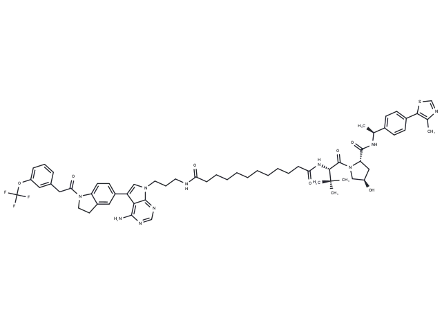 – NC1=C2C(=CN(CCCNC(CCCCCCCCCCC(N[C@H](C(=O)N3[C@H](C(N[C@@H](C)C4=CC=C(C=C4)C=5SC=NC5C)=O)C[C@@H](O)C3)[C@](C)(C)C)=O)=O)C2=NC=N1)C=6C=C7C(=CC6)N(C(CC8=CC(OC(F)(F)F)=CC=C8)=O)CC7