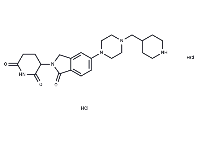 – O=C1C=2C(CN1C3C(=O)NC(=O)CC3)=CC(=CC2)N4CCN(CC5CCNCC5)CC4.Cl.Cl