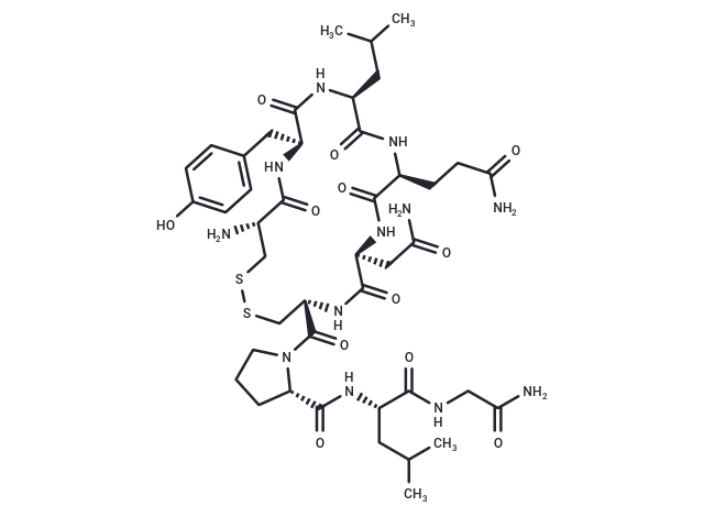 – CC(C)C[C@H](NC(=O)[C@@H]1CCCN1C(=O)[C@@H]1CSSC[C@H](N)C(=O)N[C@@H](Cc2ccc(O)cc2)C(=O)N[C@@H](CC(C)C)C(=O)N[C@@H](CCC(N)=O)C(=O)N[C@@H](CC(N)=O)C(=O)N1)C(=O)NCC(N)=O