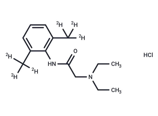 – Lidocaine-d6 HCl is a deuterated compound of Lidocaine HCl. Lidocaine HCl has a CAS number of 73-78-9. Lidocaine hydrochloride is a local anesthetic and cardiac depressant used as an antiarrhythmic agent. Its actions are more intense and its effects more prolonged than those of PROCAINE but its duration of action is shorter than that of BUPIVACAINE or PRILOCAINE.