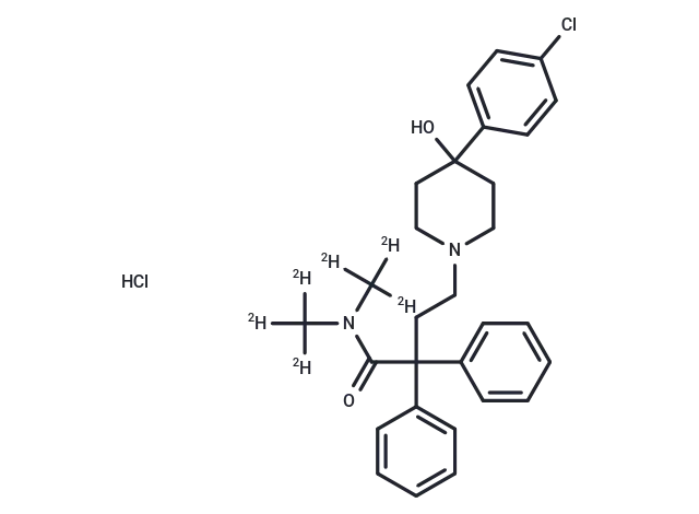 – Cl.[2H]C([2H])([2H])N(C(=O)C(CCN1CCC(O)(CC1)c1ccc(Cl)cc1)(c1ccccc1)c1ccccc1)C([2H])([2H])[2H]