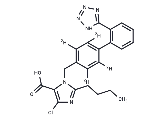 – Losartan D4 Carboxylic Acid is the deuterium labeled Losartan, which is an angiotensin II receptor antagonist.
