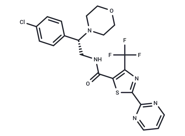 – FC(F)(F)c1nc(sc1C(=O)NC[C@@H](N1CCOCC1)c1ccc(Cl)cc1)-c1ncccn1