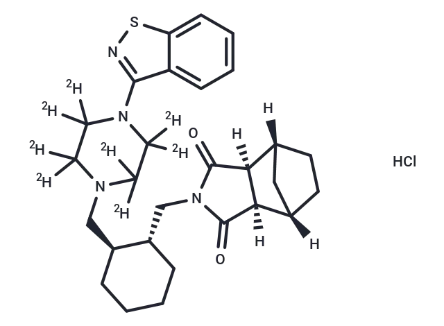 – Lurasidone-d8 HCl is a deuterated compound of Lurasidone HCl. Lurasidone HCl has a CAS number of 367514-88-3. Lurasidone hydrochloride is a thiazole derivative and atypical antipsychotic agent that functions as a dopamine D2 receptor antagonist; serotonin 5-HT2 receptor antagonist, serotonin 5-HT7 receptor antagonist, an antagonist of the adrenergic α2A and α2C receptors, as well as a partial serotonin 5-HT1A receptor agonist. It is used in the treatment of schizophrenia and bipolar disorder.