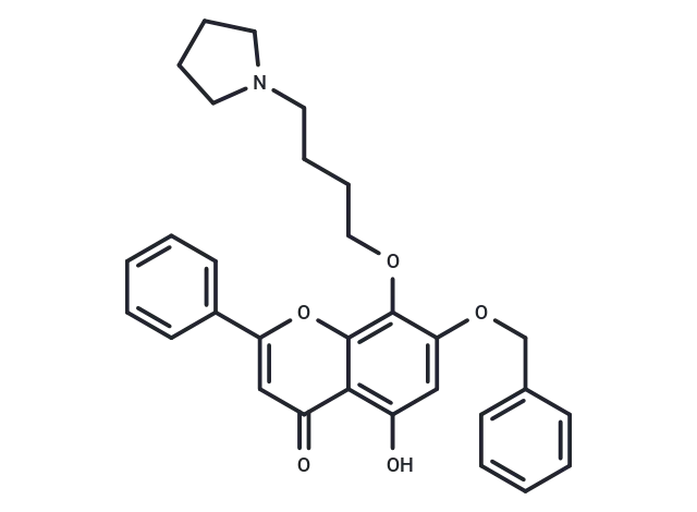– O=C1C=C(OC2=C(OCCCCN3CCCC3)C(OCC=4C=CC=CC4)=CC(O)=C12)C=5C=CC=CC5