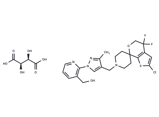 – [C@@H]([C@H](C(O)=O)O)(C(O)=O)O.FC1(F)C2=C(C3(OC1)CCN(CC4=CN(N=C4C)C5=C(CO)C=CC=N5)CC3)SC(Cl)=C2