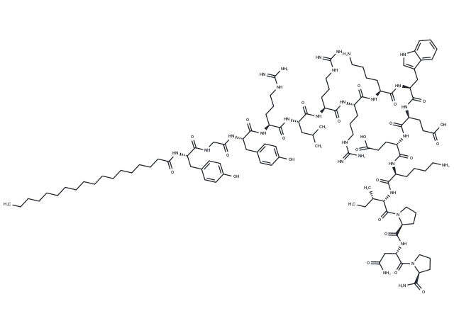 – C([C@H](NC([C@@H](NC([C@@H](NC([C@@H](NC([C@@H](NC([C@@H](NC([C@H](CC1=CC=C(O)C=C1)NC(CNC([C@H](CC2=CC=C(O)C=C2)NC(CCCCCCCCCCCCCCCCC)=O)=O)=O)=O)CCCNC(=N)N)=O)CC(C)C)=O)CCCNC(=N)N)=O)CCCNC(=N)N)=O)CCCCN)=O)C(N[C@H](C(N[C@H](C(N[C@H](C(N[C@H](C(=O)N3[C@H](C(N[C@H](C(=O)N4[C@H](C(N)=O)CCC4)CC(N)=O)=O)CCC3)[C@H](CC)C)=O)CCCCN)=O)CCC(O)=O)=O)CCC(O)=O)=O)C=5C=6C(NC5)=CC=CC6