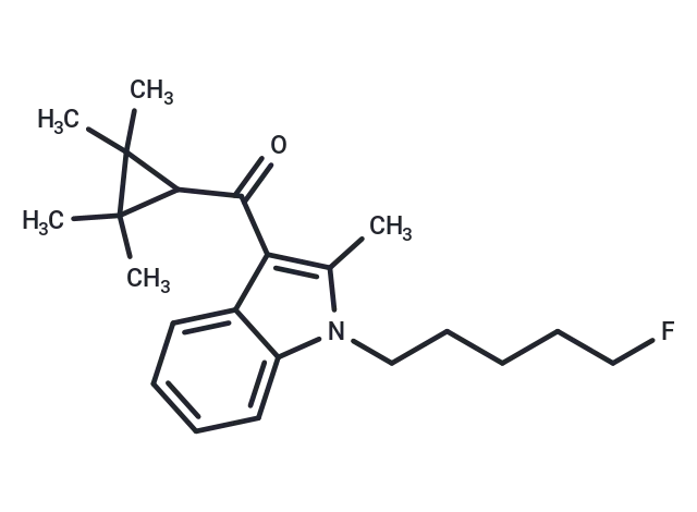 – UR-144, a synthetic cannabinoid, exhibits high affinity for the peripheral cannabinoid receptor (CB2) with a Ki of 1.8 nM, markedly greater than its affinity for the central cannabinoid receptor (CB1), for which it has a Ki of 150 nM. XLR-11 differs from UR-144 by featuring a fluorine atom on the terminal carbon of the alkyl chain and a methyl group on the C2 carbon of the indole. The specific biological activities of XLR-11 remain uncharacterized. It is designed for forensic and research use only.