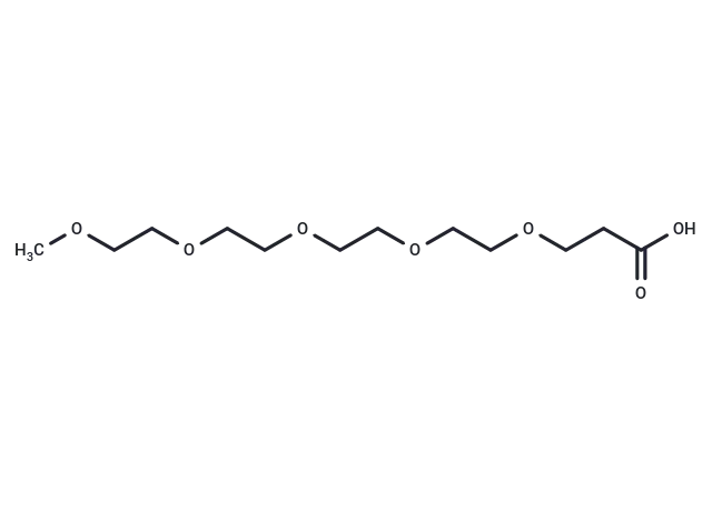 – m-PEG5-acid is a PEG-based linker for PROTACs that joins two essential ligands, aiding in the formation of PROTAC molecules. This linker facilitates selective protein degradation by utilizing the ubiquitin-proteasome system within cells.