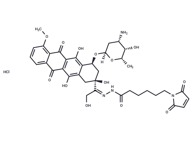 – Cl.[H][C@@]1(C[C@H](N)[C@H](O)[C@H](C)O1)O[C@H]1C[C@@](O)(Cc2c(O)c3C(=O)c4cccc(OC)c4C(=O)c3c(O)c12)C(CO)=N/NC(=O)CCCCCN1C(=O)C=CC1=O