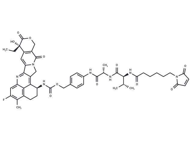 – MC-VA-PAB-Exatecan is an agent-linker conjugate designed for Antibody-Drug Conjugate (ADC) applications, comprising the ADC linker (peptide MC-VA-PAB) and the DNA topoisomerase I inhibitor Exatecan. Synthesis of this conjugate has demonstrated promising antitumor activity [1].