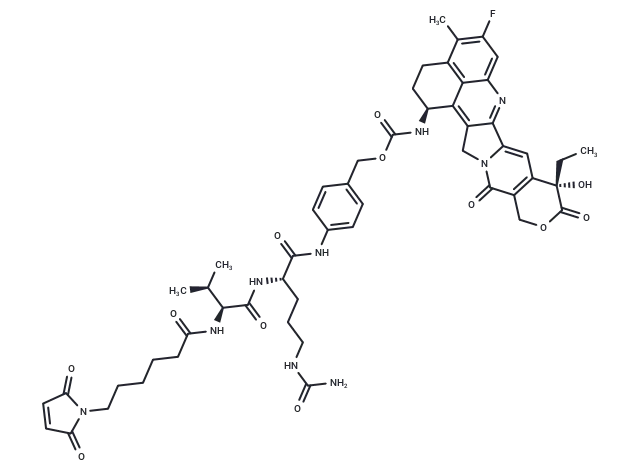 – MC-Val-Cit-PAB-Exatecan (MC-Val-Cit-PAB-DX8951) is a conjugate of the DNA topoisomerase I inhibitor DX-8951 and a cathepsin-cleavable antibody-drug conjugate (ADC) linker, designed for targeted cancer therapy applications.