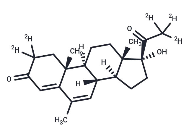 – Megestrol-d5 is a deuterated compound of Megestrol. Megestrol has a CAS number of 3562-63-8. Megestrol, a progestational hormone, is used most commonly as the acetate ester in the palliative treatment of breast cancer.