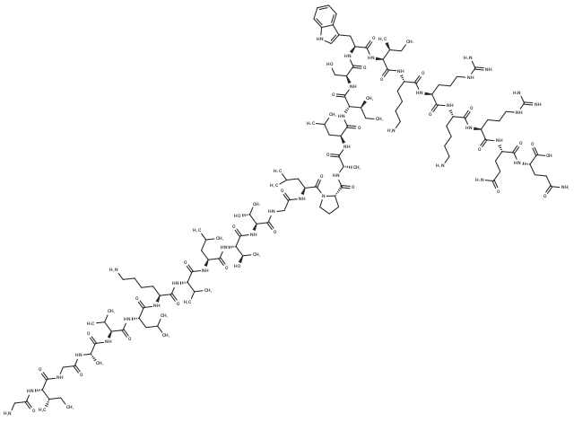– CC[C@H](C)[C@H](NC(=O)CN)C(=O)NCC(=O)N[C@@H](C)C(=O)N[C@@H](C(C)C)C(=O)N[C@@H](CC(C)C)C(=O)N[C@@H](CCCCN)C(=O)N[C@@H](C(C)C)C(=O)N[C@@H](CC(C)C)C(=O)N[C@@H]([C@@H](C)O)C(=O)N[C@@H]([C@@H](C)O)C(=O)NCC(=O)N[C@@H](CC(C)C)C(=O)N1CCC[C@H]1C(=O)N[C@@H](C)C(=O)N[C@@H](CC(C)C)C(=O)N[C@@H]([C@@H](C)CC)C(=O)N[C@@H](CO)C(=O)N[C@@H](Cc1c[nH]c2ccccc12)C(=O)N[C@@H]([C@@H](C)CC)C(=O)N[C@@H](CCCCN)C(=O)N[C@@H](CCCNC(N)=N)C(=O)N[C@@H](CCCCN)C(=O)N[C@@H](CCCNC(N)=N)C(=O)N[C@@H](CCC(N)=O)C(=O)N[C@@H](CCC(N)=O)C(O)=O