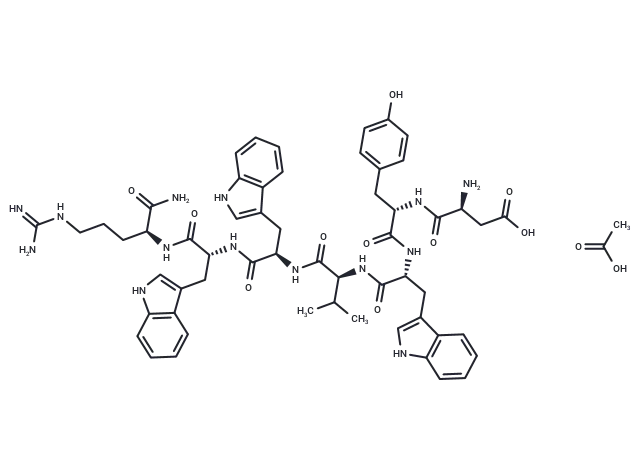 – N=C(N)NCCC[C@@H](C(N)=O)NC([C@@H](CC1=CNC2=C1C=CC=C2)NC([C@@H](CC3=CNC4=C3C=CC=C4)NC([C@H](C(C)C)NC([C@@H](CC5=CNC6=C5C=CC=C6)NC([C@H](CC7=CC=C(O)C=C7)NC([C@H](CC(O)=O)N)=O)=O)=O)=O)=O)=O.CC(O)=O