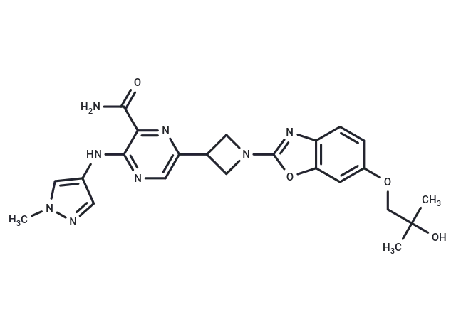 – O=C(N)C1=NC(=CN=C1NC=2C=NN(C2)C)C3CN(C4=NC=5C=CC(OCC(O)(C)C)=CC5O4)C3
