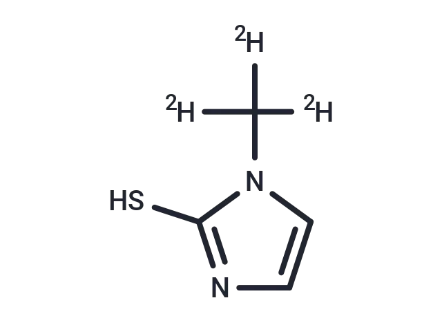 – Methimazole D3, a deuterium-labeled version of Methimazole, serves as an antithyroid medication for treating hyperthyroidism in both humans and animals.