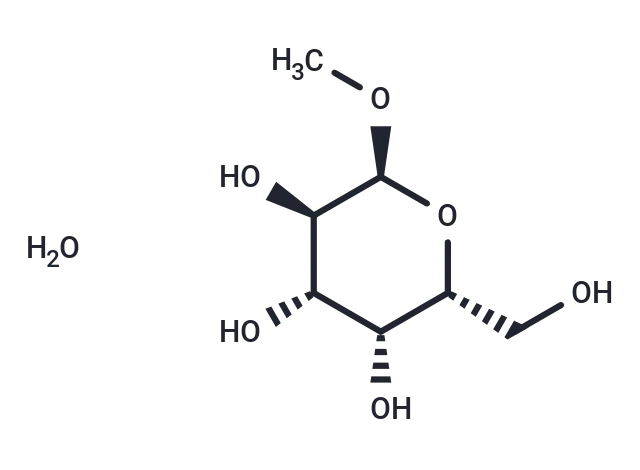 – Methyl α-D-galactopyranoside monohydrate, an alpha-D-galactoside featuring a methyl substituent at the anomeric position, inhibits both extracellular and intracellular α-galactosidases of Debaryomyces hansenii UFV-1 with K i values of 0.82 mM and 1.12 mM, respectively [1].