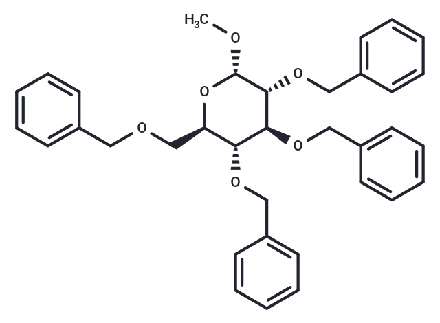 – Methyl 2,3,4,6-tetrakis-O-(phenylmethyl)-α-D-glucopyranoside is a biochemical reagent used in glycobiology research. Glycobiology focuses on the study of carbohydrate structures, synthesis, biology, and evolution, encompassing carbohydrate chemistry, glycan formation and degradation enzymology, protein-glycan recognition, and glycans’ roles in biological systems. This field is closely linked to fundamental research, biomedicine, and biotechnology.