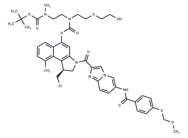 – C(Cl)[C@H]1C2=C(N(C(=O)C=3N=C4N(C3)C=C(NC(=O)C5=CC=C(OCOC)C=C5)C=C4)C1)C=C(OC(N(CCN(C(OC(C)(C)C)=O)C)CCOCCO)=O)C=6C2=C(C)C=CC6