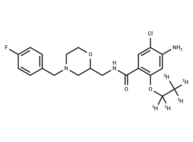 – Mosapride-d5 is a deuterated compound of Mosapride. Mosapride has a CAS number of 112885-41-3. Mosapride is a selective 5HT4 agonist