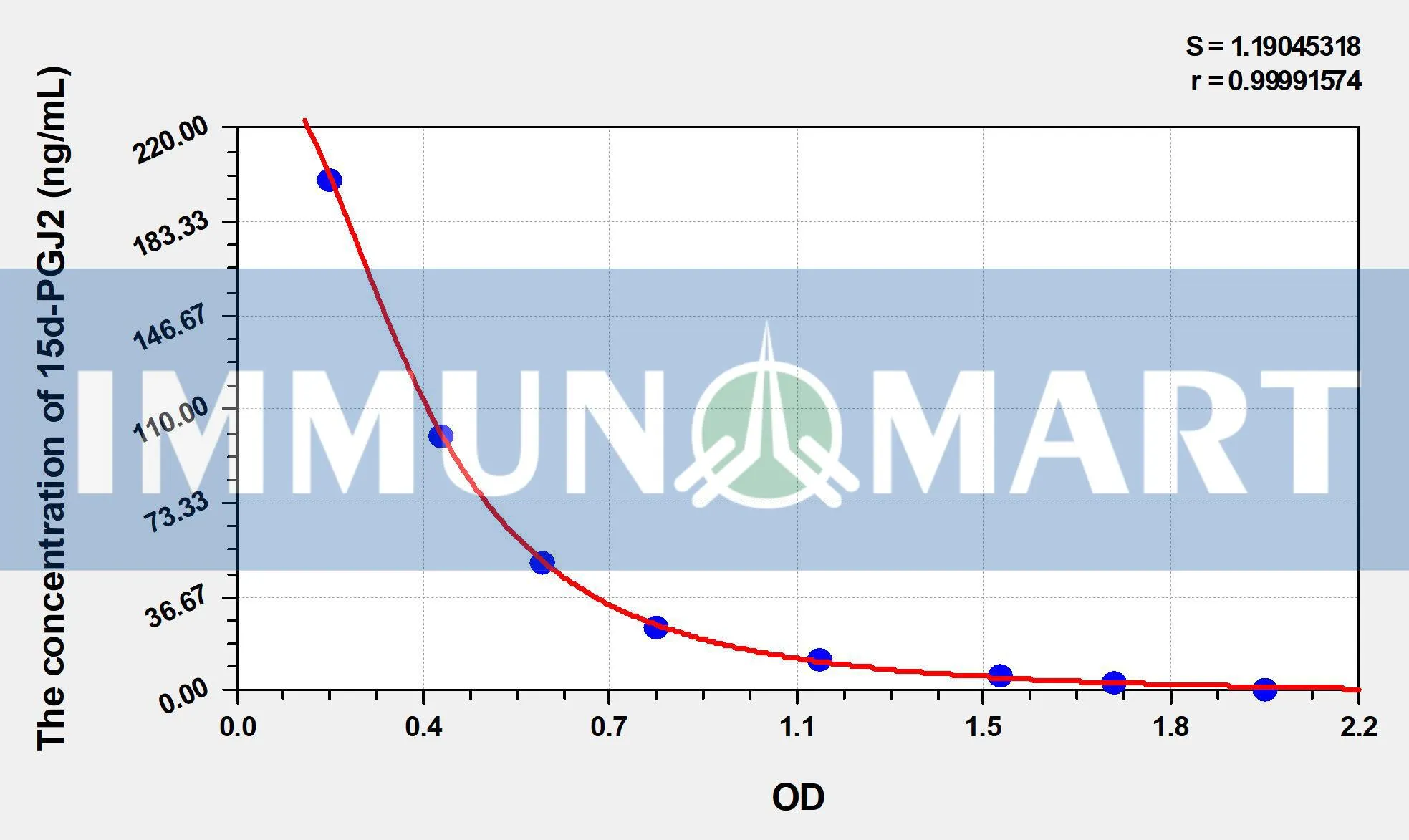 – This assay employs the competitive inhibition enzyme immunoassay technique. The microtiter plate provided in this kit has been pre-coated with Mouse 15d-PGJ2 protein. Standards or samples are added to the appropriate microtiter plate wells then with a biotin-conjugated antibody specific to Mouse 15d-PGJ2. Next, Avidin conjugated to Horseradish Peroxidase (HRP) is added to each microplate well and incubated. After TMB substrate solution is added. The enzyme-substrate reaction is terminated by the addition of sulphuric acid solution and the color change is measured spectrophotometrically at a wavelength of 450nm ± 10nm. The concentration of Mouse 15d-PGJ2 in the samples is then determined by comparing the OD of the samples to the standard curve.