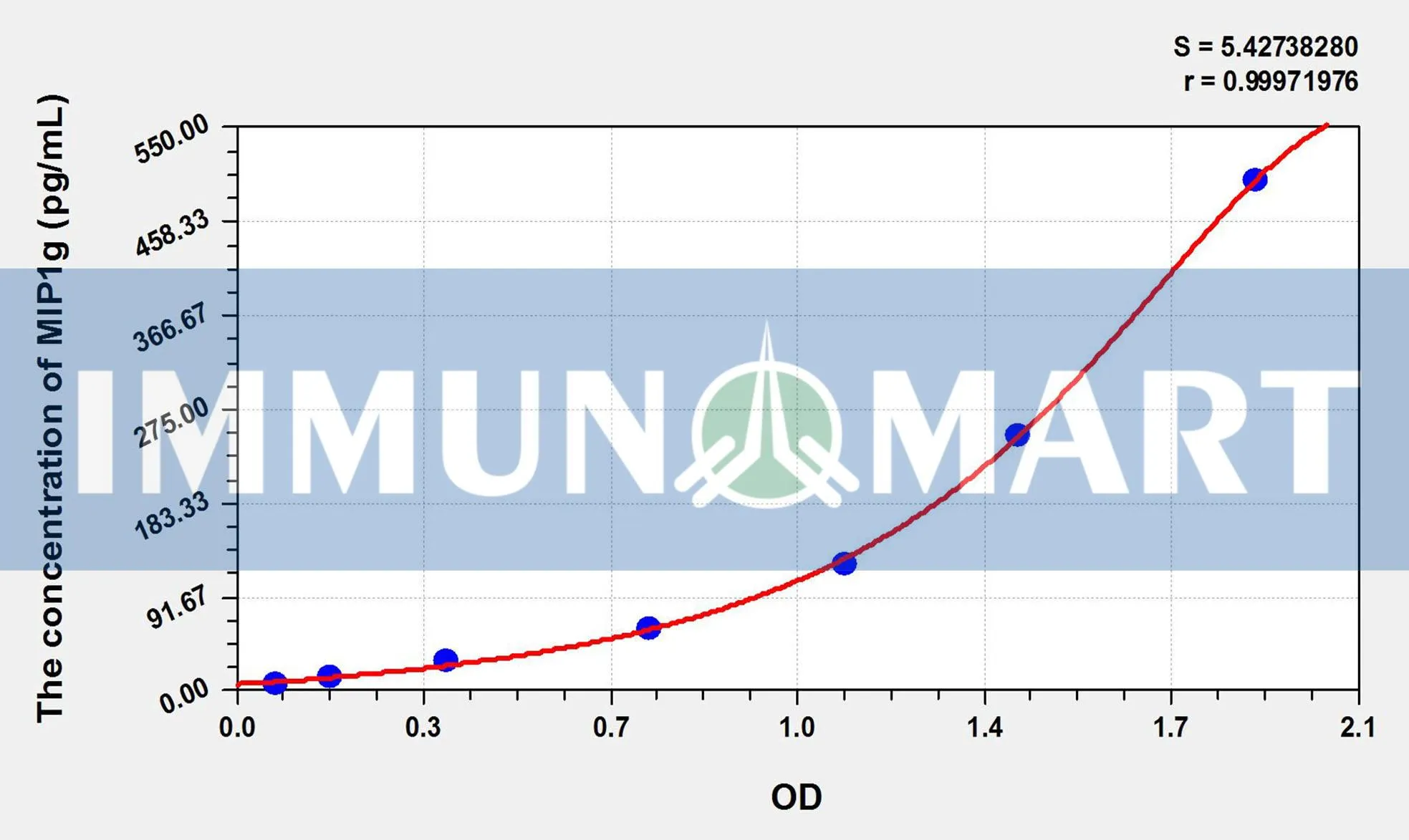 – The test principle applied in this kit is Sandwich enzyme immunoassay. The microtiter plate provided in this kit has been pre-coated with an antibody specific to Mouse MIP1g. Standards or samples are added to the appropriate microtiter plate wells then with a biotin-conjugated antibody specific to Mouse MIP1g. Next, Avidin conjugated to Horseradish Peroxidase (HRP) is added to each microplate well and incubated. After TMB substrate solution is added, only those wells that contain Mouse MIP1g, biotin-conjugated antibody and enzyme-conjugated Avidin will exhibit a change in color. The enzyme-substrate reaction is terminated by the addition of sulphuric acid solution and the color change is measured spectrophotometrically at a wavelength of 450nm ± 10nm. The concentration of Mouse MIP1g in the samples is then determined by comparing the OD of the samples to the standard curve.