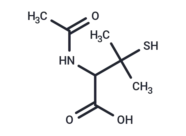 – N-Acetyl-DL-penicillamine is a chelating agent.1,2,3It inhibits the binding of methyl mercury to isolated human erythrocytes by 50% and removes 50% of methyl mercury ions from methyl mercury-loaded blood cells when used at a concentration of 1 mM.1,2N-Acetyl-DL-penicillamine (3 mmol/kg per day, p.o.) reduces the biological half-life of mercury and decreases liver, kidney, brain, and blood mercury levels, as well as increases urinary excretion of mercury in a concentration-dependent manner, in mice when administered following injection of methyl mercuric chloride. It decreases mercuric chloride-induced mortality in mice when administered orally at a dose of 1.6 mmol/kg.3N-Acetyl-DL-penicillamine is also an analog of SNAP that does not generate nitric oxide and has been used as a negative control in experiments using SNAP.4,5