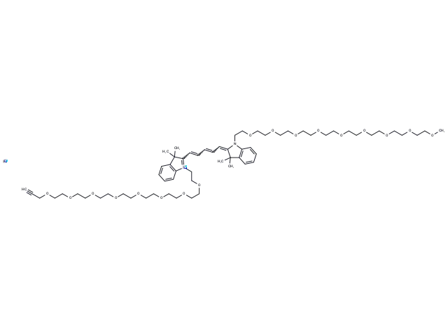 – N-(m-PEG9)-N’-(propargyl-PEG8)-Cy5 is a polyethylene glycol (PEG)-based PROTAC linker designed for synthesizing PROTACs [1].