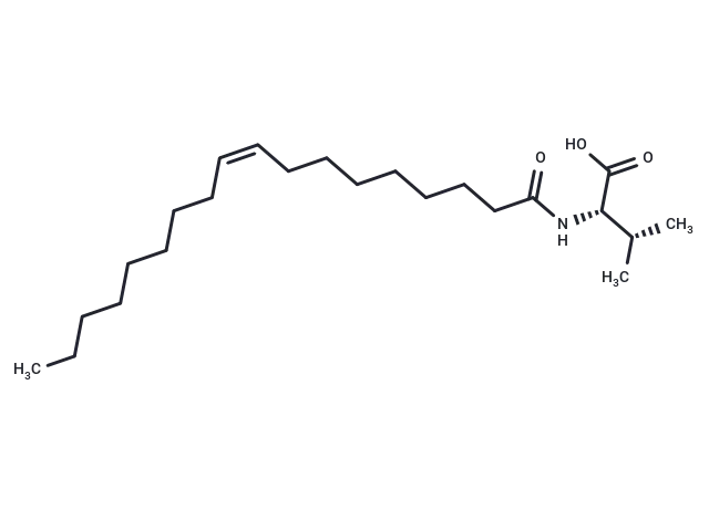 – N-Oleoyl valine is an endogenous N-acyl amine that acts as an antagonist at the transient receptor potential vanilloid type 3 (TRPV3) receptor, which is involved in thermoregulation. N-Oleoyl valine is increased in mice following cold exposure for up to at least 16 days. Acute lung injury in mice increases the concentration of N-Oleoyl valine in lung tissue. N-acyl amines also promote mitochondrial uncoupling.