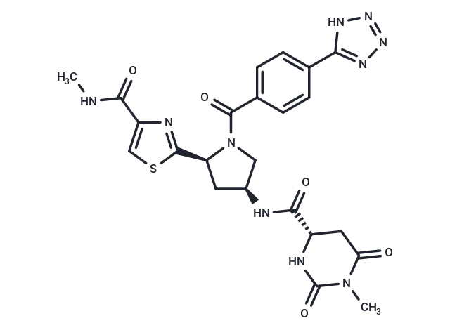 – C(=O)(N1[C@@H](C[C@H](NC(=O)[C@@H]2CC(=O)N(C)C(=O)N2)C1)C3=NC(C(NC)=O)=CS3)C4=CC=C(C=C4)C=5NN=NN5