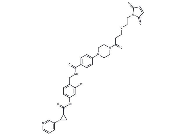 – Fc1cc(NC(=O)[C@H]2C[C@@H]2c2cccnc2)ccc1CNC(=O)c1ccc(cc1)N1CCN(CC1)C(=O)CCOCCN1C(=O)C=CC1=O