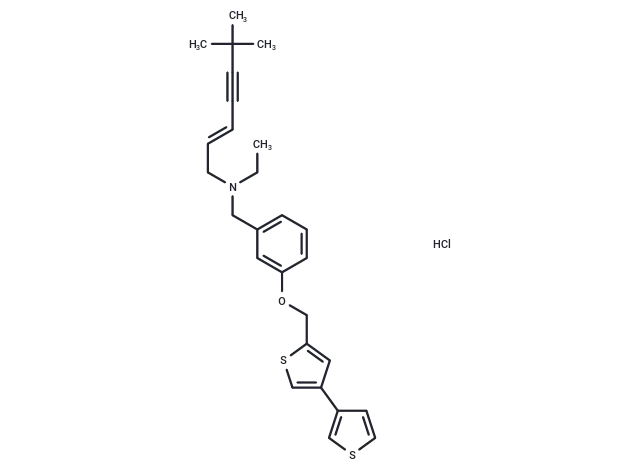 – C(OC1=CC(CN(C/C=C/C#CC(C)(C)C)CC)=CC=C1)C2=CC(=CS2)C=3C=CSC3.Cl