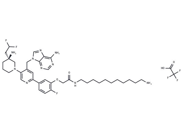 – C1C[C@@](CN(C1)C2=CN=C(C=C2CN3C=NC4=C(N=CN=C43)N)C5=CC(=C(C=C5)F)OCC(=O)NCCCCCCCCCCCN)(CC(F)F)N.C(=O)(C(F)(F)F)O