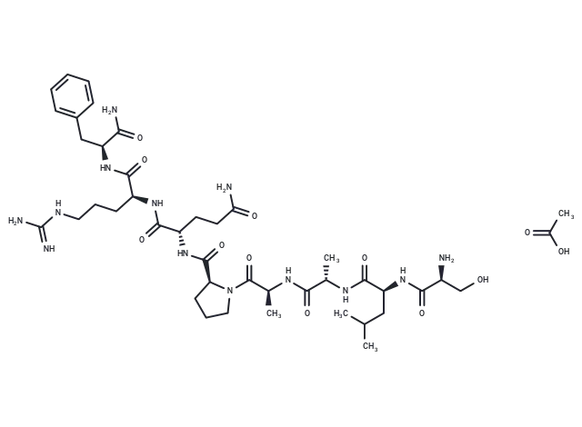 – O=C(N)[C@H](CC1=CC=CC=C1)NC([C@H](CCCNC(N)=N)NC([C@H](CCC(N)=O)NC([C@H]2N(C([C@H](C)NC([C@H](C)NC([C@H](CC(C)C)NC([C@H](CO)N)=O)=O)=O)=O)CCC2)=O)=O)=O.CC(O)=O