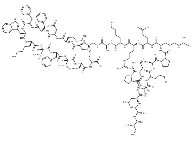 – C(C=1C=2C(NC1)=CC=CC2)[C@@H]3NC(=O)[C@H](CC4=CC=CC=C4)NC(=O)[C@H](CC5=CC=CC=C5)NC(=O)[C@H](CC(N)=O)NC(=O)[C@H](CCCCN)NC(=O)[C@@H](NC(CNC([C@@H](NC([C@@H](NC([C@@H](NC([C@@H](NC([C@@H](NC(=O)[C@H]6N(C([C@@H](NC([C@@H](NC([C@@H](NC(=O)[C@H]7N(C([C@@H](NC([C@@H](NC([C@@H](NC([C@@H](NC([C@H](CO)N)=O)C)=O)CC(N)=O)=O)CO)=O)CC(N)=O)=O)CCC7)C)=O)CCCC)=O)C)=O)CCC6)CCCNC(=N)N)=O)CCC(O)=O)=O)CCCNC(=N)N)=O)CCCCN)=O)C)=O)=O)CSSC[C@@H](C(O)=O)NC(=O)[C@H](CO)NC(=O)[C@]([C@@H](C)O)(NC(=O)[C@H](CC8=CC=CC=C8)NC(=O)[C@]([C@@H](C)O)(NC(=O)[C@H](CCCCN)NC3=O)[H])[H]